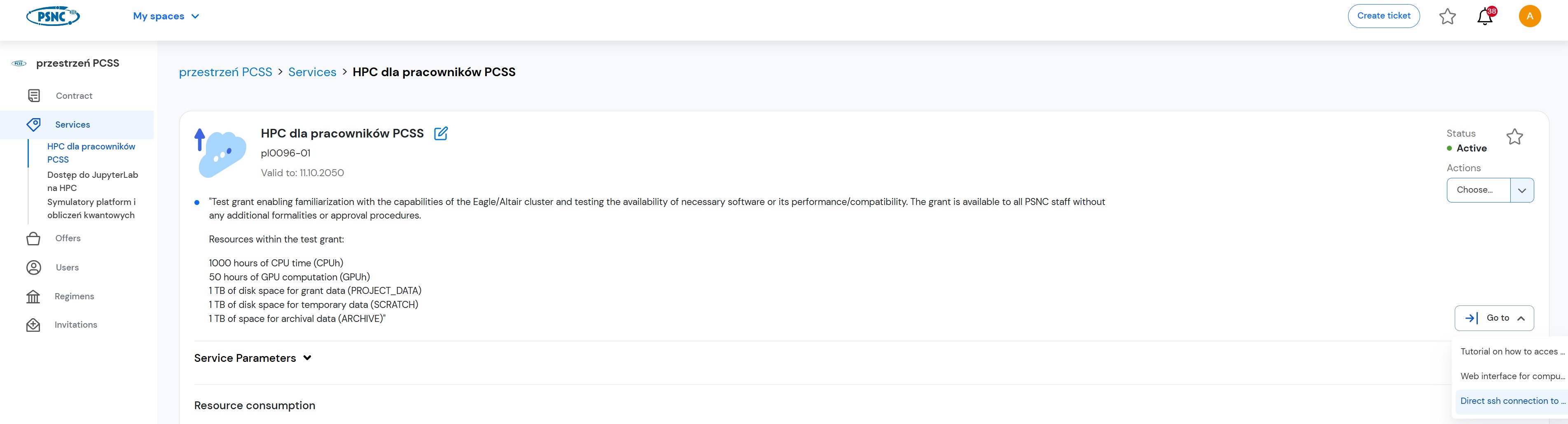 The portal also allows you to manage users within the spaces you have created, submit tickets in case of problems, and view available service offerings. Each of these functions is intuitive and described in detail on the portal's page, making it easy to use PSNC resources.