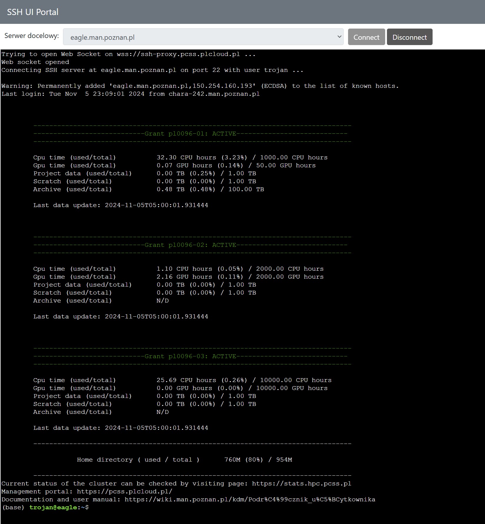 - you can also enter directly through the site https://ssh-ui.pcss.plcloud.pl/ (opens new window)