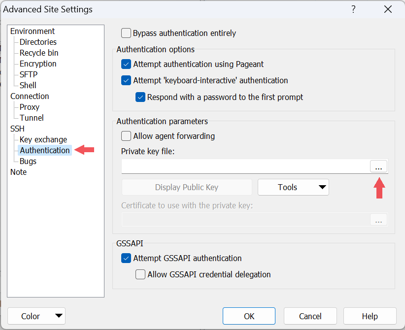 - select the SSH and Authentication tab