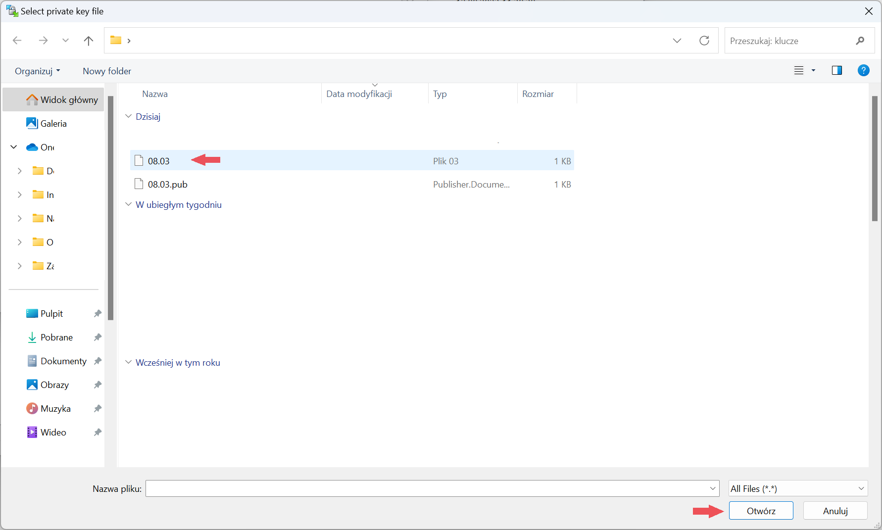 - we choose the location of our private key from the local disk