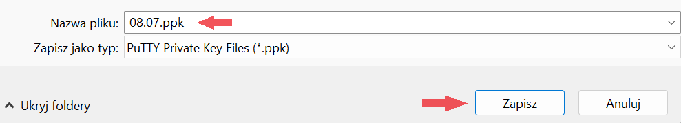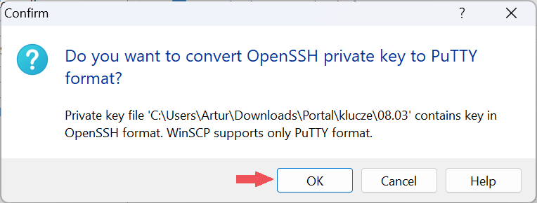 - we agree to convert the private key to PuTTY format