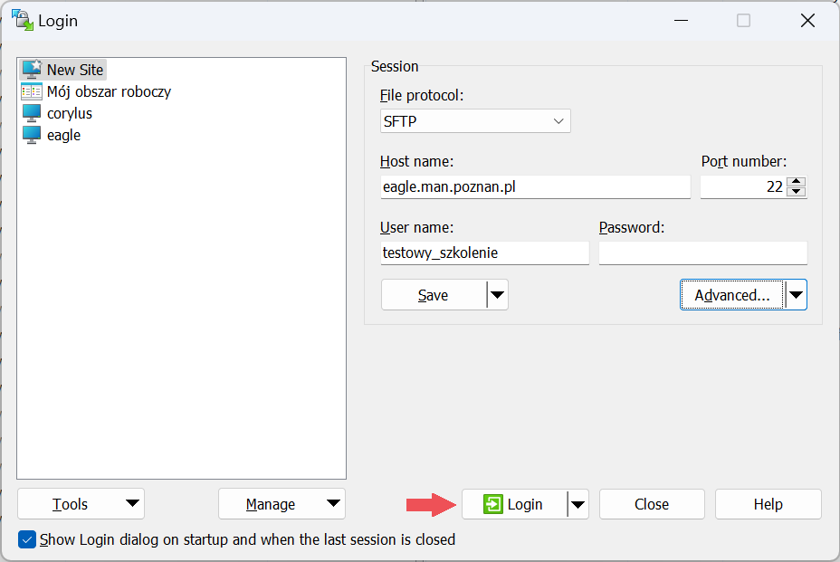 - in the Host name field enter eagle.man.poznan.pl